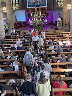 Am Samstag, den 12. April wurden die Familien der Kindertagesstätte St. Lambertus und St. Hildegard zu einem Wortgottesdienst in die Kirche eingeladen. Während die Erziehungsberechtigten und Begleitpersonen der Kinder in der Kirche schon Platz genommen haben, zogen die Kinder mit ihren Gruppenerziehern in die Kirche ein. Mit dem Lied „Jesus zieht in Jerusalem ein“ und den Palmstöcken in der Hand nahmen sie in der Kirchenbank Platz. Neben Liedern und Fürbitten wurde durch Geschichten von Jesus Einzug in Jerusalem gesprochen. Am Ende durften alle Kinder zur Segnung in den Altarbereich hinaufkommen.