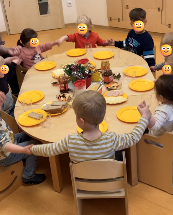 Schon seit dem vergangenen August dürfen die Krippenkinder ein gleitendes Mittagessen genießen. Dadurch erlernen die Kinder Selbstständigkeit und selbstwirksames Handeln. Sie entscheiden selbst, wann sie in der dafür vorgesehenen Zeit zum Essen gehen möchten. In der Mensa stoßen sie auf ein Buffet. Dort nehmen sich die Kinder selbst den Teller und füllen ihn nach ihrem Bedürfnis mit dem zur Verfügung gestellten Essen. Seit Anfang des Jahres bringen die Krippenkinder auch kein Frühstück von Zuhause mehr mit. Stattdessen wird dieses gemeinsam mit den Kindern in den Krippengruppen vorbereitet. Nach einer Testphase wurde schnell deutlich, dass die Kinder das Frühstück sehr gut annehmen und genießen. Es ist abwechslungsreich, da nicht nur zwischen Brötchen, Brot und Quark mit Früchten gewechselt wird, sondern beispielsweise auch mal leckere Pancakes gebacken werden. Sowohl den Kindern als auch den ErzieherInnen gefällt es sehr gut.